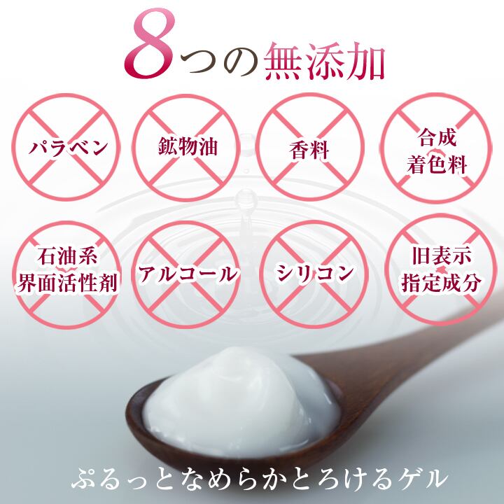 ●8つの無添加(パラベン、鉱物油、香料、合成着色料、石油系界面活性剤、アルコール、シリコン、旧表示指定成分)
